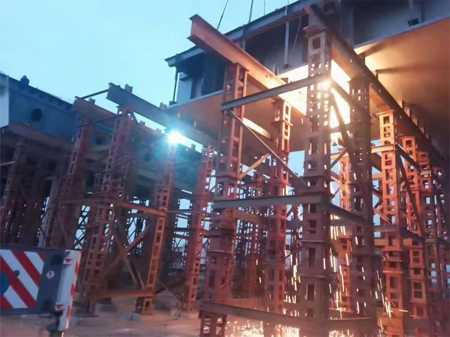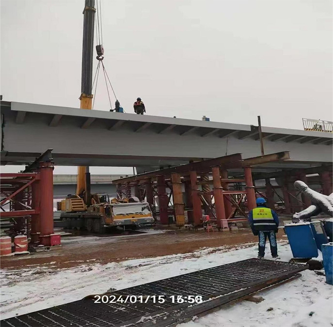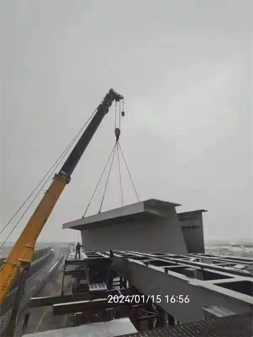 陜西重型機(jī)械制造有限公司承擔(dān)的航站樓出場道路高架橋項(xiàng)目中的400多塊鋼箱梁,其中50%以上的鋼箱梁為新式疊合梁,該疊合梁的結(jié)構(gòu)復(fù)雜程度和單件重量以及多變的外形,為陜重公司的首次加工和安裝,技術(shù)難度大。該項(xiàng)目的參建,對陜重公司鋼結(jié)構(gòu)橋梁的制作和安裝具有劃時(shí)代意義。